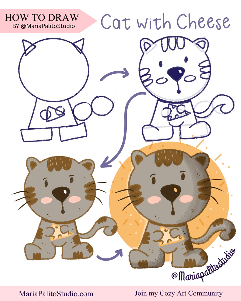 We will go from Shapes to Shine! In these step-by-step guides, we’ll begin with super simple shapes and, in just 4 stages, turn them into a finished illustration.