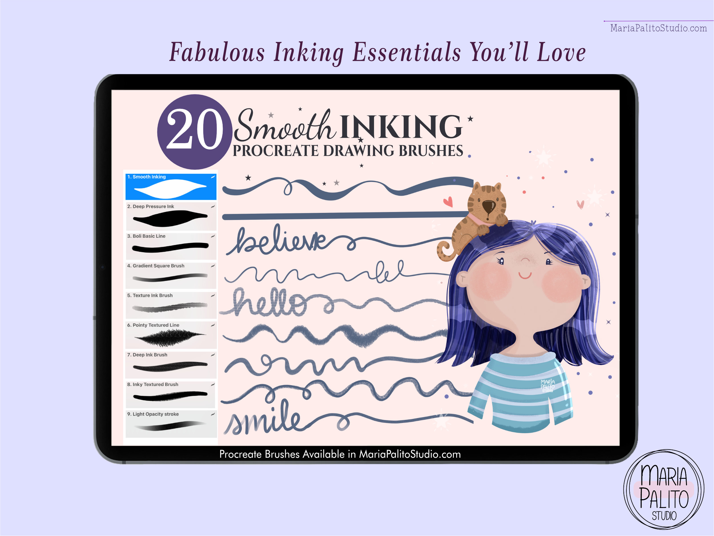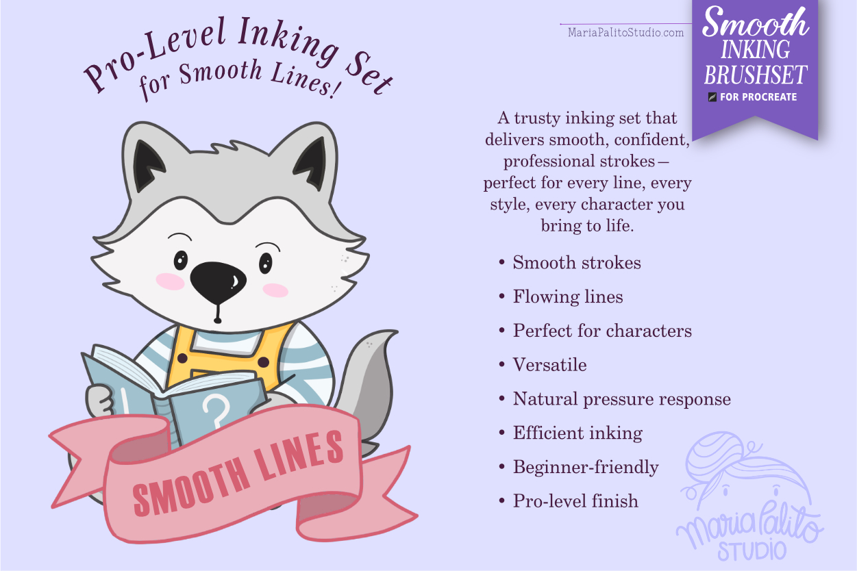 Designed with love for digital artists and beginners alike, this Procreate inking brushes set includes 20 smooth, high-quality brushes perfect for line art, outline drawing, and digital illustration on your iPad.