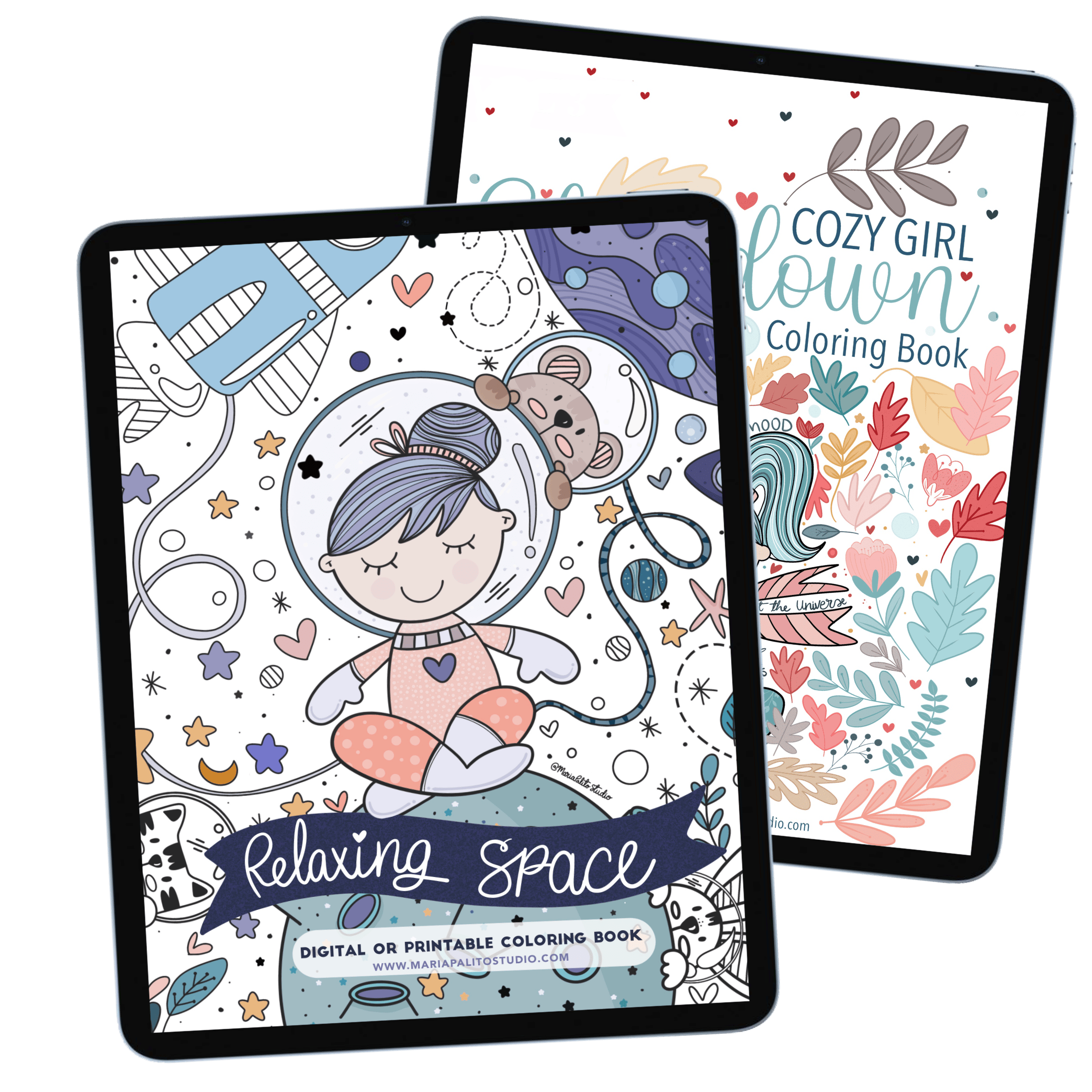 2 whimsical coloring books. Including 32 completely hand-drawn pages. Expand your creativity and explore new techniques with these two books for the ipad using procreate app. One of the book is a Self-Love theme book that includes “Calming Nature Drawings” and “Cute Chreatures”. The other one is a Relaxing Space book that includes “chibi dolls” and “chreatures in the space”. Each of them has a different color palette to give you more options for your coloring.